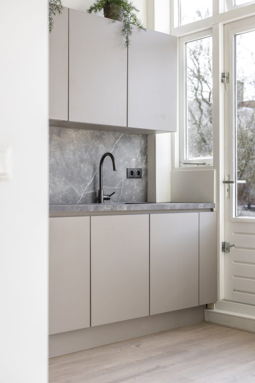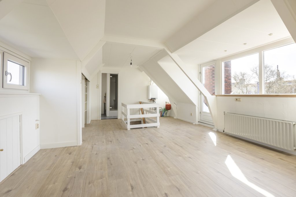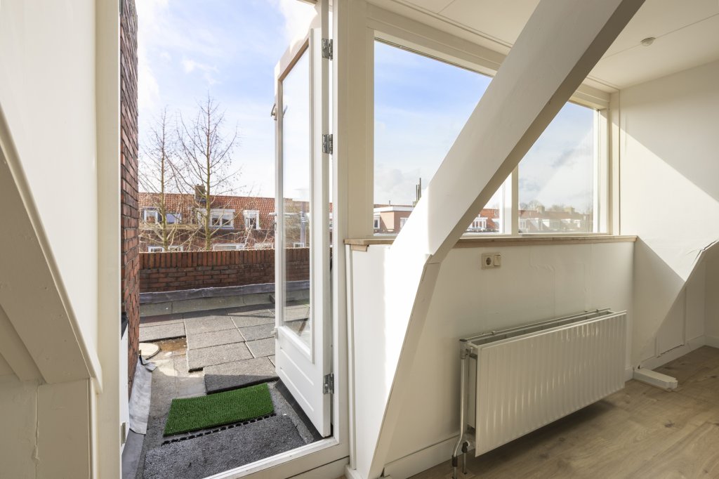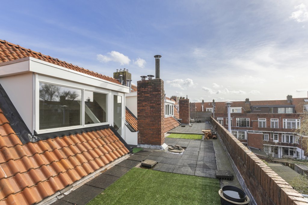 Aan buitenruimte geen gebrek; vanuit de keuken bereik je een zonnig balkon van circa 10 m² en boven vind je een ruim dakterras van bijna 30 m². Beide gelegen op het zuiden, waardoor je hier de hele dag van de zon kunt genieten.
