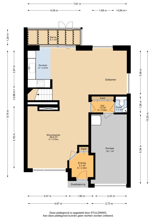 - inpandige garage van ca. 14 m²;