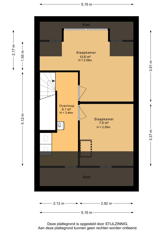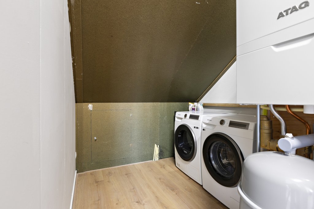 Tweede verdieping: overloop met de installaties (C.V.-ketel, WTW en wasmachine aansluiting), twee slaapkamers.