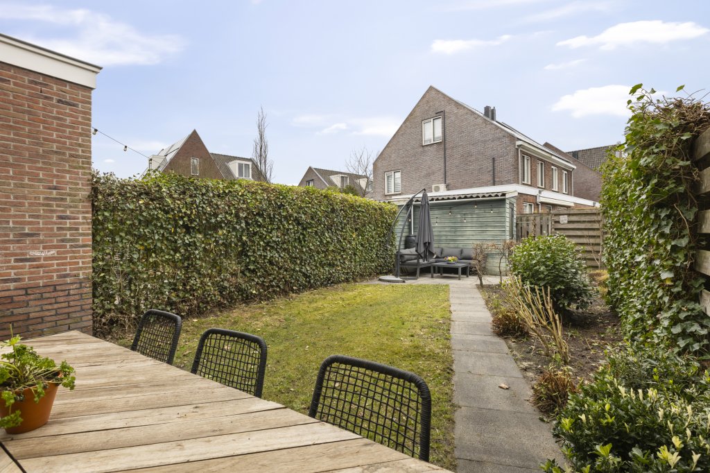 De woning beschikt over een heerlijke achtertuin met meerdere mogelijkheden om een gezellige zitplek te creëren. Of je nu wilt genieten van de zon of liever een plekje in de schaduw opzoekt, hier is altijd een fijne plek te vinden. Daarnaast is de tuin voorzien van een berging en een achterom.