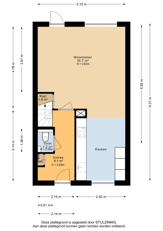 Begane grond: entree, hal met meterkast en toegang naar het toilet met wastafeltje, tuingerichte woonkamer met open keuken, de keuken is in 2022 vernieuwd en is voorzien van alle gemakken. Vanaf de woonkamer openslaande deur naar de tuin.
