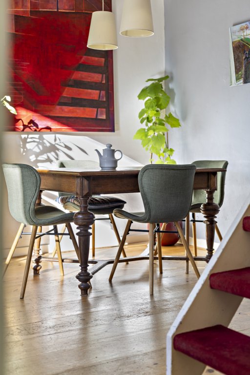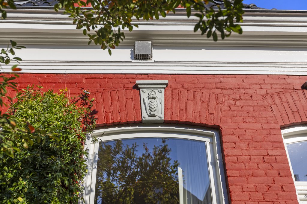 Zodra je de charmante rode gevel met witte accenten en de uitnodigende entree binnenstapt, proef je de warme sfeer van dit huis. De hoge plafonds, sierlijke lijstwerken en grote ramen zorgen voor een lichte en ruimtelijke beleving.