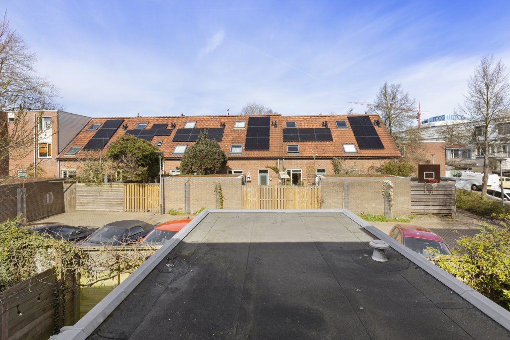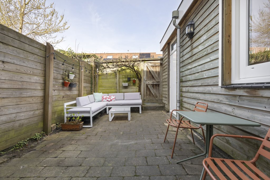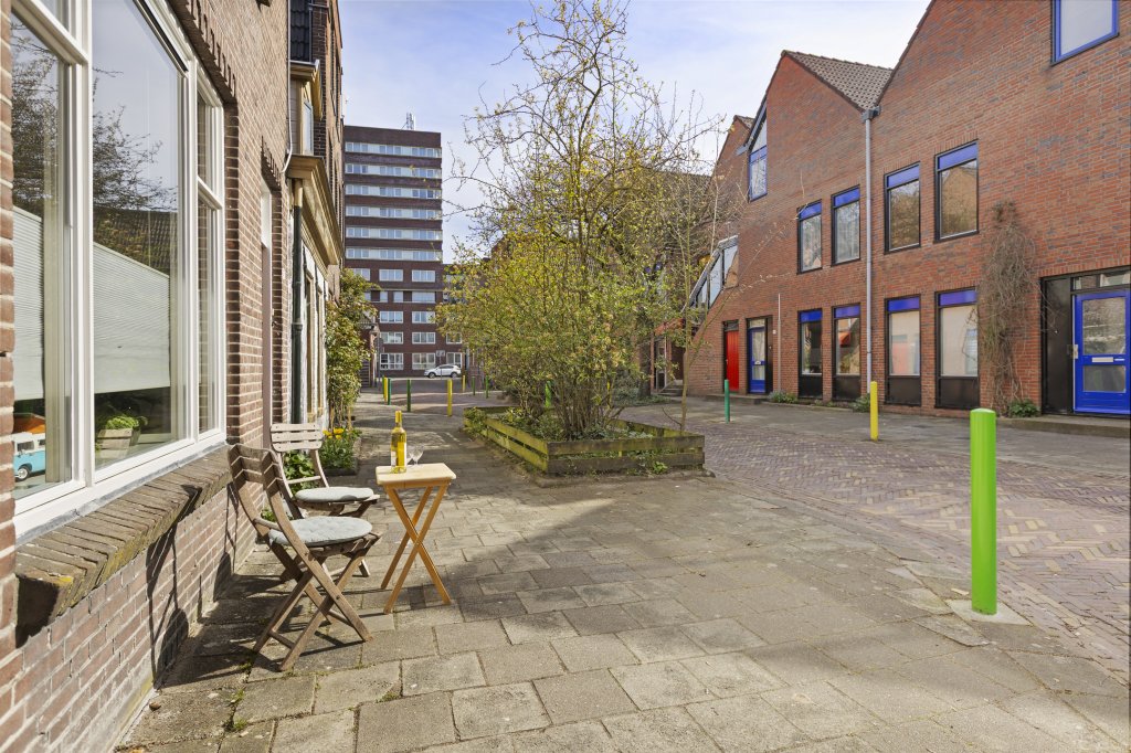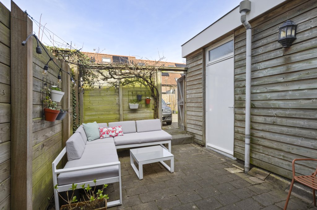 Aan de achterzijde ligt een knusse tuin waar je in alle rust kunt genieten van het buitenleven. Er is een achterom aanwezig. Vanaf de achterom kom je bij de parkeerplaatsen die voor bewoners zijn (vergunninghouders). Aan de voorzijde bevindt zich een zonnig plekje met ruimte voor een zitje — perfect om ‘s middags van een drankje in de zon te genieten.