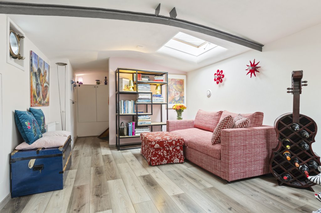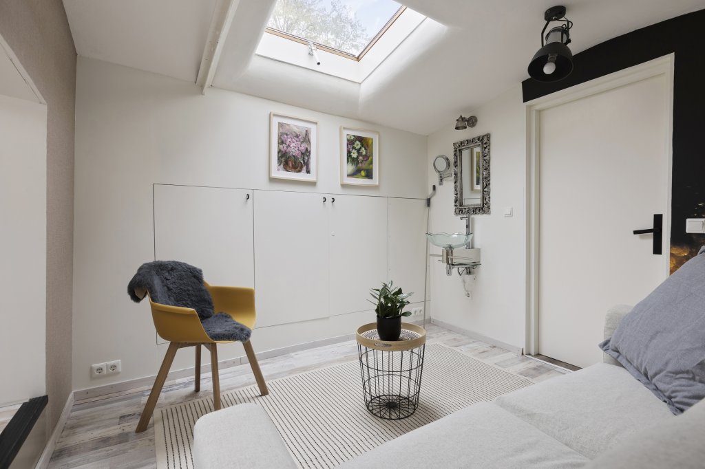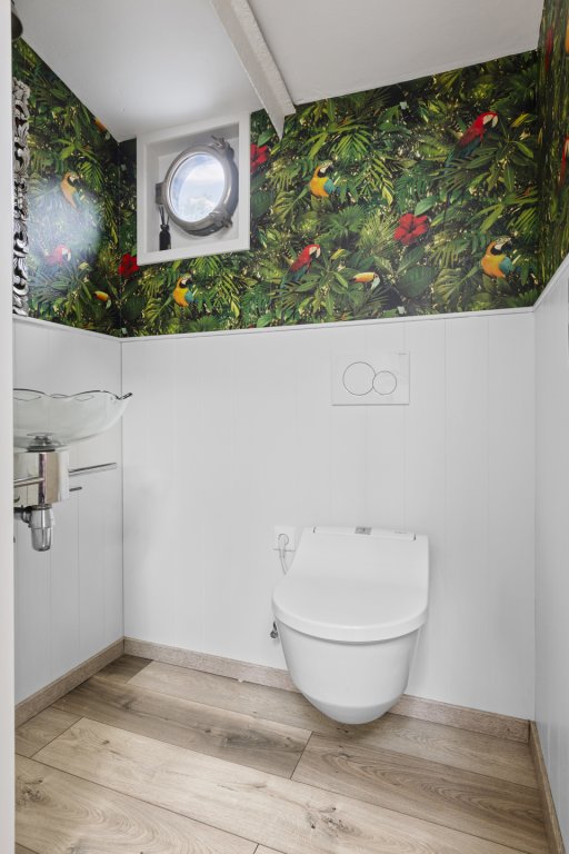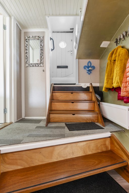 Binnen is het licht, ruim en verrassend modern, zonder dat de charme verloren is gegaan. Er is een heerlijke open woonkamer, een praktische en eigentijdse keuken, een stijlvolle badkamer met tweede toilet en een sfeervolle slaapkamer met directe toegang tot het voordek. De grote bovenlichten laten het daglicht binnenstromen en zorgen voor een prettige, open sfeer. Onder de gangboorden is aan beide zijden slimme kastruimte gemaakt, zodat er nergens ruimte verloren gaat.