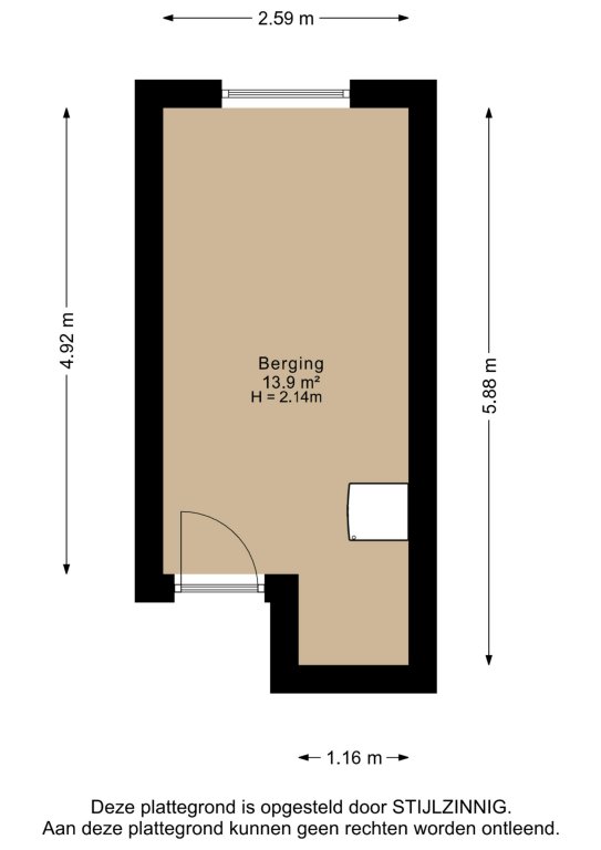 - Ruime inpandige berging van ca. 14 m².