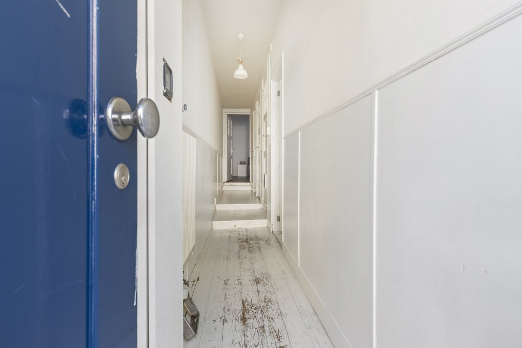 Entree met hal. Aan de voorzijde een sfeervolle voorkamer (ca. 17 m2), ideaal als thuiswerkplek of slaapkamer. De