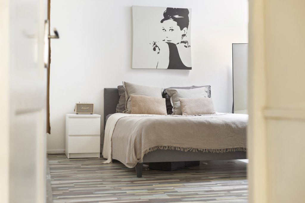 Eenmaal binnen word je verrast door de speelse indeling en de warme sfeer. De houten vloer, het doorkijkje naar