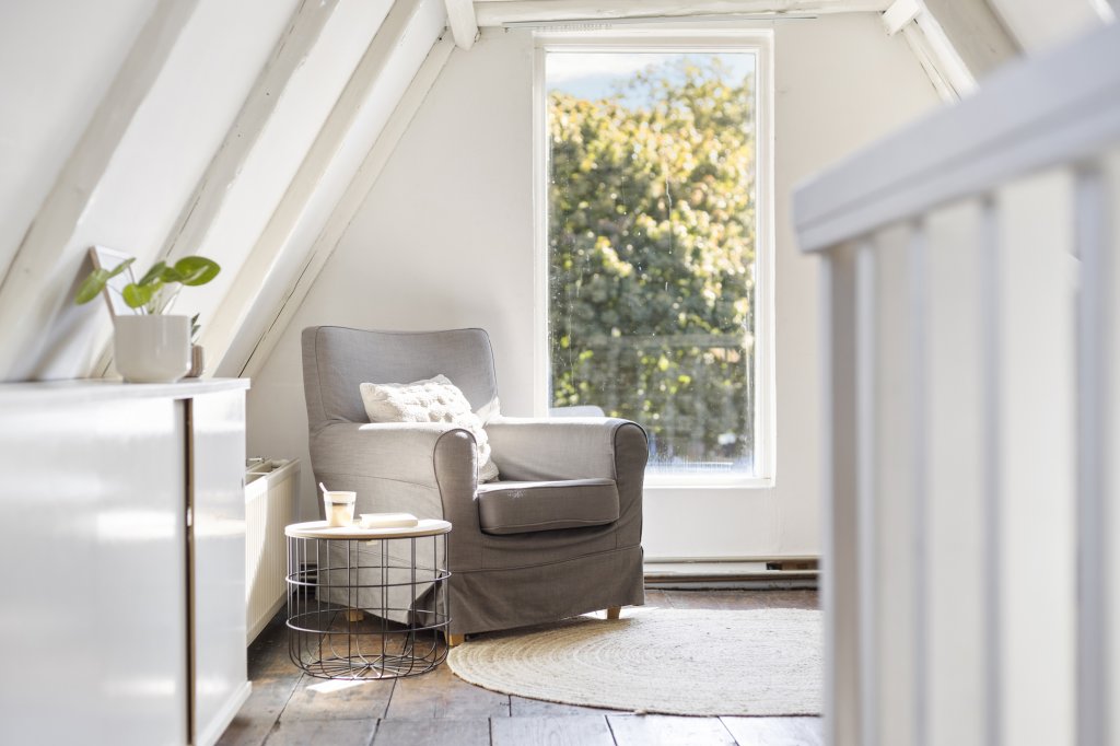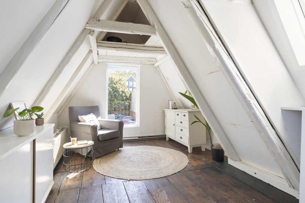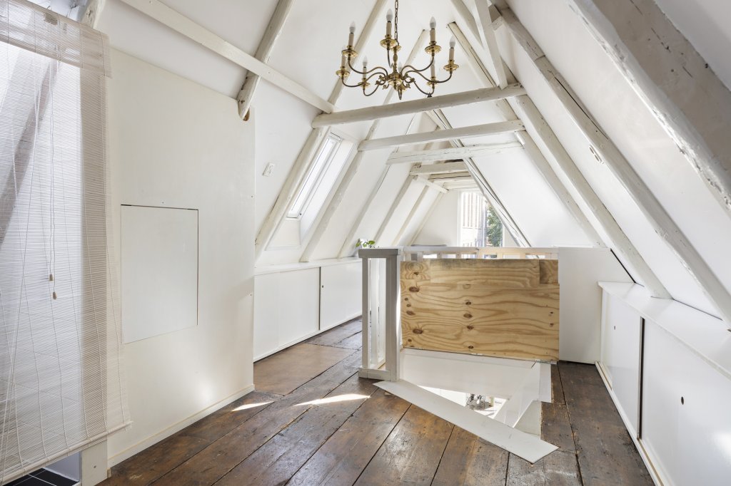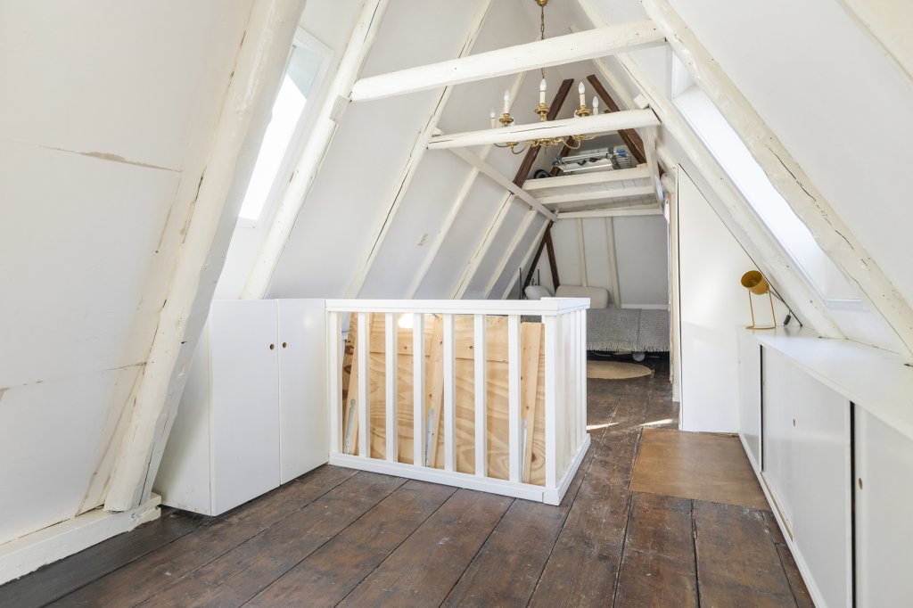 Onder de karakteristieke kap bevindt zich een open ruimte die zich perfect leent voor een creatieve hobbyzolder of