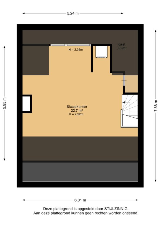Tweede verdieping: slaapkamer (ca. 22,7 m²).