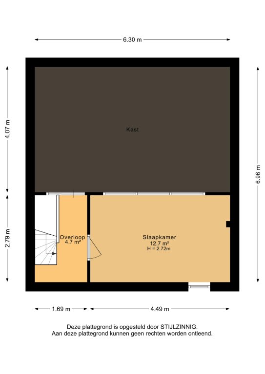 Eerste verdieping: overloop met toegang tot de tweede slaapkamer (ca. 12,7 m²) en inbouwkast.